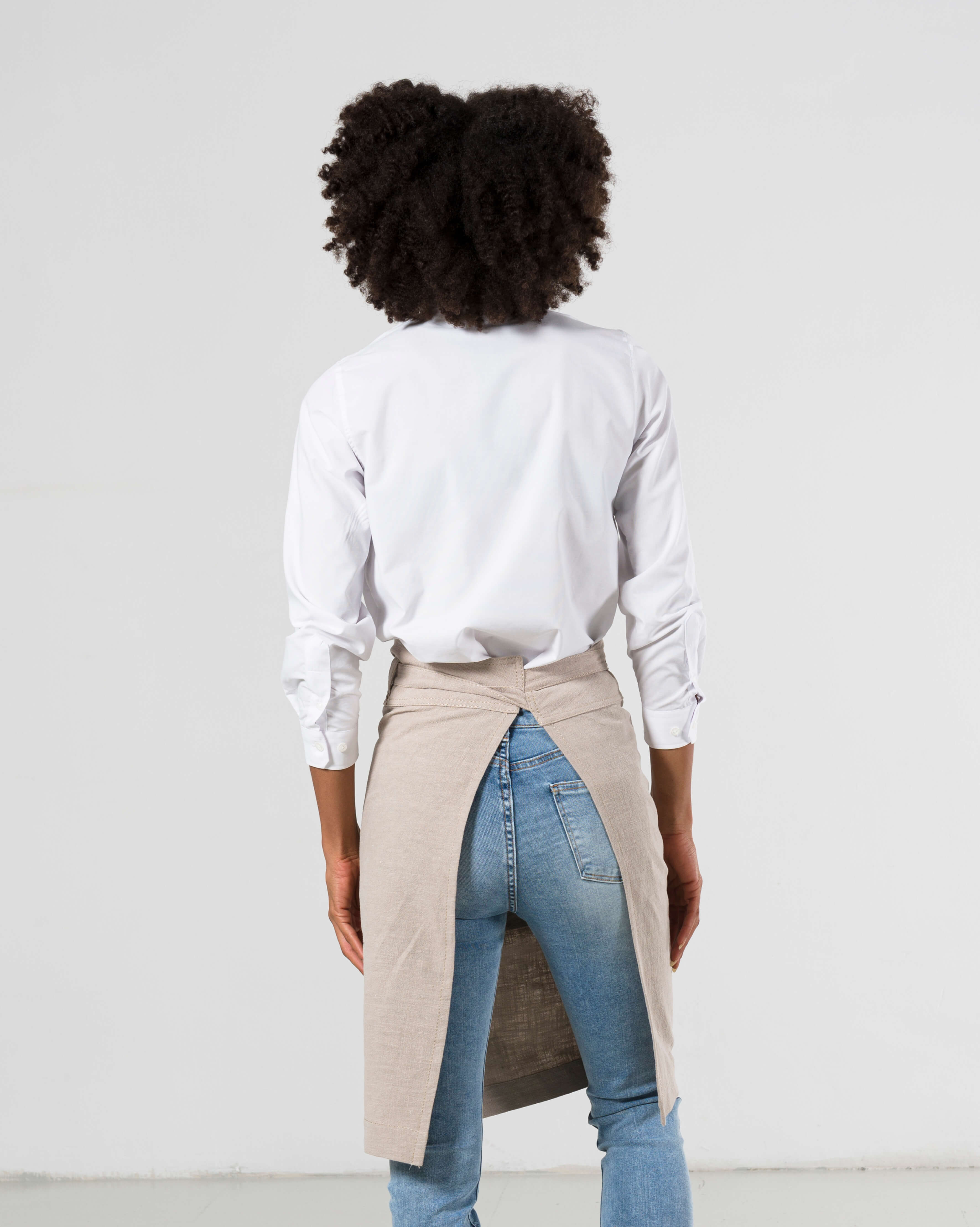 Para una apariencia elegante y contemporánea, el DELANTAL NAGOYA presenta un fajín con cintura reforzada de lino de alto gramaje.